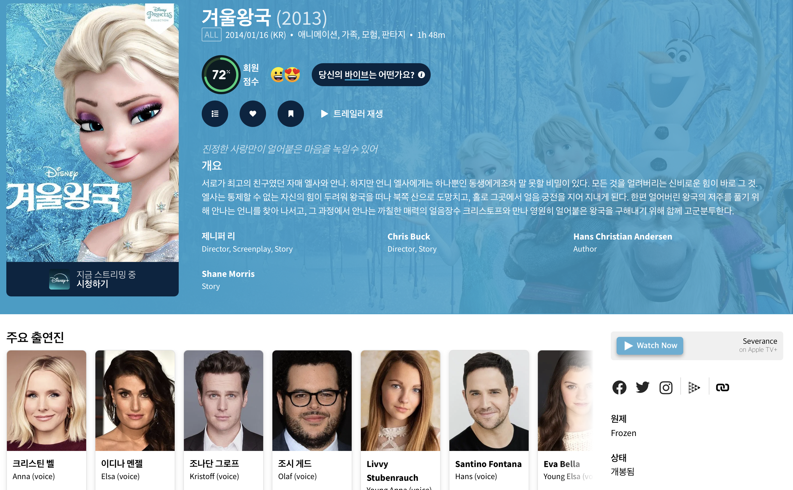 - 부분적인 한국어 지원: 제목이나 개요등은 한국어를 잘 지원하지만, 배우의 배역이나 몇 가지 정보는 미흡함.
