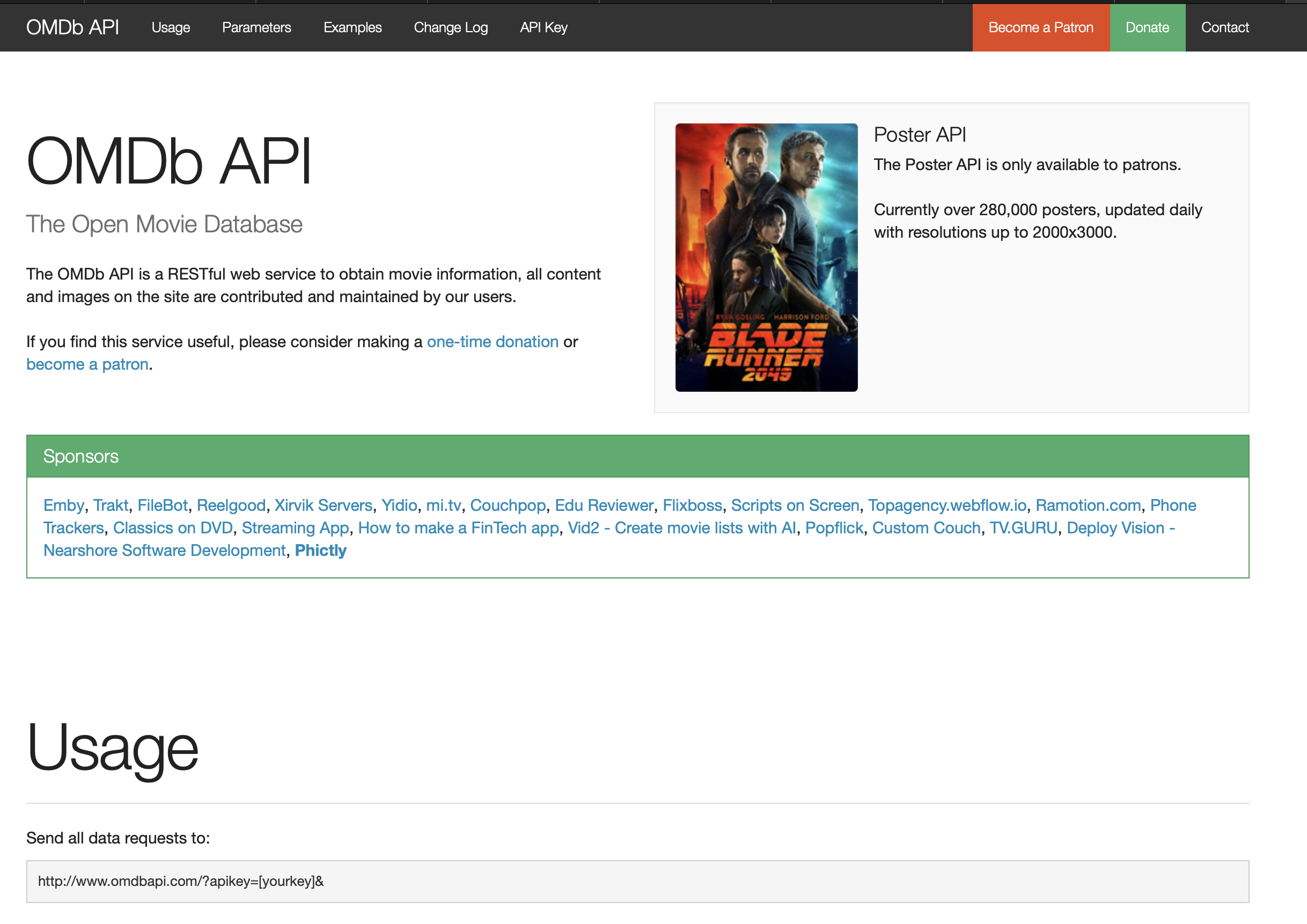 - 포스터 전용 API: 약 28만 장의 영화 포스터를 보유하고 있으나, 후원자(patron) 전용 가능